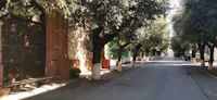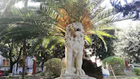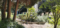 I giardini dell Ospedale Militare, vero paradiso nel centro della città pugliese, sono strutturati su di un pendio organizzato a gradoni e terrazzi che guarda sul Mar Piccolo di Taranto, ricalcando la cavea di un edificio teatrale. Al suo interno presenta delle vere e proprie meraviglie: un ruscello vivace per la presenza di citri di acqua dolce che sgorgano in superficie e mantengono la flora interna per cui anche grazie agli effetti dell’inversione termica troviamo specie di collina e tipiche del sottobosco ad una quota per loro insolita: ciclamini, funghi, capelvenere che convivono in armonia con il papiro, l’acanto molle spontaneo e pini secolari. “SI RURUSUS/ HEIC/PECCASSET ADAM/FORSITAN DEUS/ IGNOSCERET” (Se qui Adamo peccasse di nuovo forse Iddio lo perdonerebbe), questa la famosa iscrizione, tanto a voler sottolineare la magnificenza del luogo, posta su uno specchio epigrafico ovale che si trova sul cancello d'ingresso delimitato a destra e a sinistra da pilastri che sorreggono due leoni litici che custodivano l'ingresso della Villa di Monsignor CapeceLatro e che oggi accolgono i visitatori all'ingresso dei giardini.