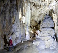 Scoperta nel 1984, ha subito animato entusiasmi e curiosità per la sua straordinaria bellezza. L’ingresso, immette in un’ È lunga 2.500 Matri e l'ingresso ci porta nell' ampia galleria lunga circa 400 metri, caratterizzata dalla presenza di straordinarie concrezioni candide di varia forma e struttura. Deve la sua importanza al ritrovamento nel suo interno delle ossa del palco di un cervo del pleistocene di notevole interesse paleontologico e di monete romane del IV-V sec. d.C. e del XV secolo. La cavità datata a più di 800.000 anni fa. Nell'anno 2024 ricorrono i 40 anni dalla scoperta dell'ingresso dopo un lungo studio di ricerca ed esplorazione sul posto, di 14 ricercatori speleologi romani chiamati " I 14 dell'Ovito" Le spettacolari concrezioni della Grotta del Cervo a Pietrasecca di Carsoli, le magnifiche colate di calcite bianca che ornano da secoli queste spettacolari cavità, sono visitabili tutti i weekend dell'anno e da Luglio a Settembre tutti i giorni. Sono disponibili tre livelli di percorso, facile L1, allagato L2 e speleologico. Ai visitatori è messa a disposizione l'attrezzatura per entrare: caschetto con luce frontale, guanti (percorso L1) mentre per il percorso allagato anche gli stivali gommati. Le visite si effettuano accompagnati da una guida ambientale esperta. La Riserva Naturale Speciale Grotte di Pietrasecca è la prima riserva che tutela un ambiente ipogeo e considerata Sito di Interesse Comunitario per il patrimonio Abruzzese.