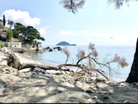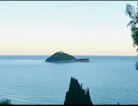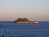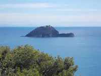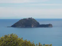 L’isola non è visitabile, ma dalla Via Iulia Augusta si possono scorgere la torre cinquecentesca, fatta costruire dai genovesi; il palazzo padronale, più volte ampliato e rimaneggiato arrivando a inglobare i resti dell’antico monastero; la chiesetta del primo Novecento in stile neoromanico.
