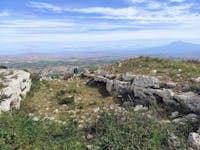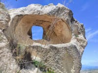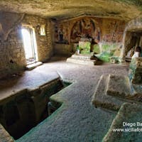 Il principale monumento della città di Palagonia (CT) è l'eremo di Santa Febronia, basilica rupestre risalente al VI-VII sec. d.C., sito in contrada Coste. Si tratta di un ambiente con molta probabilità ricavato da una precedente tomba preistorica, e che attraverso varie trasformazioni venne adibito successivamente a luogo di culto. La parete di fondo della basilica ospita un'abside, su cui sono affrescati il Cristo Pantocratore contornato da un'Annunciazione e da altre quattro figure sullo sfondo (databili intorno al XV sec.); ai lati dell'abside sono raffigurati il martirio di santa Febronia e quello di san Bartolomeo, databili tra il XVI e il XVII sec.; mentre nella parete posta di fronte all'ingresso sono raffigurati santa Lucia, un santo vescovo, un Angelo orante racchiuso entro un tondo, sant'Agata, sant'Anastasia ed il peccato originale, anche questi databili tra il XVI e il XVII sec. In questa parete è ricavato anche un secondo altare con nicchia atta ad ospitare una probabile icona, mentre nella parete a destra sono intagliati gli scranni per sedersi durante l'officiatura dei riti. Tra una delle finestrelle aperte sulla parete prospettica e l'affresco di santa Febronia si notano tracce di un altro affresco rimosso, raffigurante probabilmente san Giovanni Battista. Al centro dell'ambiente dal piano di calpestio si scende attraverso dei gradini lapidei in un ambiente a T, nelle cui pareti sono ricavate delle nicchie con funzione di colatoi per i corpi dei monaci dopo la morte. Il processo serviva a mummificarli parzialmente. Un altro accesso dell'oratorio è costituito da una scala lapidea posta sul retro. Le Coste di Santa Febronia conservano anche notevoli resti di un villaggio databile al II millennio a.C. Le indagini condotte dai tecnici della soprintendenza di Catania hanno messo in luce i resti di una capanna con il suo ricco corredo, un lungo muro che delimitava l'abitato e che conservava i resti di un focolare e la necropoli di tombe a grotticella artificiale disposte su filari regolari, cui si accedeva attraverso sentieri intagliati nella roccia. Le analisi dei semi rinvenuti e di diversi contenitori in ceramica provenienti dalla capanna hanno permesso di conoscere la dieta degli abitanti dell'area, mentre in un settore separato rispetto alla capanna, è stata individuata una zona dedicata alle attività artigianali all'aperto, come la lavorazione della selce e la macellazione. Notevoli, infine, le deposizioni rinvenute davanti alla celle, che documentano rituali di offerte e libagioni successive al seppellimento. Dal villaggio provengono anche oggetti in metallo che hanno permesso di conoscere l'evoluzione delle tecniche metallurgiche, dal rame arsenicale al bronzo.