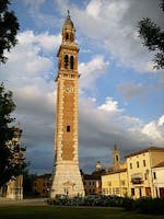 La torre campanaria del Duomo di Santa Sofia fu realizzata dall'architetto e sacerdote Francesco Antonio Baccari, che realizzò due progetti; venne scelto quello che prevedeva la realizzazione del campanile con base a forma quadrangolare. Il 1797 segnò l'inizio della costruzione del campanile, edificazione che incontrò qualche difficoltà a causa della natura acquitrinosa del terreno e che durò sette anni, ultimata in seguito nel 1824 con l'aggiunta della cella campanaria aperta a bifore, del lanternino a forma di tempietto e della cupola sulla quale fu collocata una piattaforma girevole con sopra un angelo ligneo rivestito di rame, opera di Silvio Soà e Ignazio Bardani (la scultura originaria, il cui modello in scala è ospitato nella sacrestia, fu distrutta da un fulmine nel 1973 e perciò sostituita da un'opera realizzata successivamente all'evento).