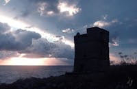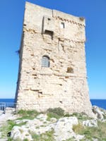La Torre di Plane o Palàne sorge su uno sperone di roccia conosciuto come “Punta di Plano”, sul litorale costiero di Marina Serra, località balneare di Tricase. La suddetta Torre, come pure la Torre del Porto di Tricase e la Torre del Sasso, sorge nella seconda metà del 16° secolo.Torre Palane rappresenta un piano architettonico originario in quanto, come Torre di avvistamento o cavallara, non è stata oggetto di attacchi nemici, come invece la Torre del Porto di Tricase, andata in rovina nel 1810 in quanto torre di difesa. Intorno al 1557 il Regno di Napoli contava 313 torri di cui 58 in Terra d’Otranto e tra queste la stessa Torre Palane. Essa è a pianta quadrata, di 9 metri di lato, di circa metri 15 di altezza ed a 15 metri dal livello del mare sottostante, con pareti lisce, salvo a metà altezza un profilo ovale poco sporgente. Per accedere all’interno, vi era e vi è ancora una grande apertura sul lato prospiciente la terraferma, posta ad altezza di sicurezza per dissuadere nemici assaltanti. All’interno gli ambienti sono pochi e senza estensione, come se in essi si dovesse solo vivere di vedetta, essendo lo spazio riservato al notevole spessore delle muraglie. A metà altezza, l’interno era diviso da un pavimento lastricato che copriva la grande cisterna piovana che raccoglieva le acque naturali, convogliate con canali intramurari nella cisterna, perché fosse assicurata l’acqua per i lunghi eventuali periodi d’assedio. Adesso, Essa, in silenzio rumoroso, di tanto in tanto chiede che qualcuno la rimetta a nuovo, la vivifichi e la riporti non ai tempi di invasione, ma di amanti visitatori guidati da Salentini memori che qui nel Basso Salento, anche le “pietre hanno voce” e anche “le ombre sono amiche”, come due poeti “grandi Salentini” hanno testimoniato, a distanza di qualche lustro l’uno dall’altro: il poeta Lucugnanese Girolamo Comi, poeta e benefico ospite di poeti e animi sensibili, tra cui Maria Corti (L’ora di tutti) che rievoca gli assalti alle Torri saracene; ed il Casaranese Gino Pisanò, professore di greco e di latino, filologo, critico d’arte e di letteratura, estimatore della bellezza salentina coniugata in tutti i settori, amante delle testimonianze dei padri e definito per antonomasia “uomo che guardava…. il mare … Mediterraneo". "Notizie tratte dalla documentazione delle Associazioni Meditinere e Januae di Tricase".
