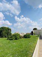 Da un lato dello spazio sorge isolato sull’acqua un padiglione dedicato alla meditazione, appositamente collocato in vista dell’arcosolio; dall’altro lato si trovano la cosiddetta tomba dei parenti e la...