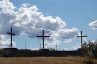 Formazione collinare che domina l'area di Scandiano. Sulla sommità è stato scstruito un manufatto in pietra che regge tre croci, da cui il nome. Area di interesse ambientale, con presenza di orchidee selvatiche.