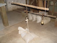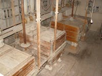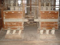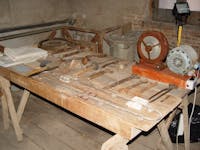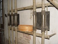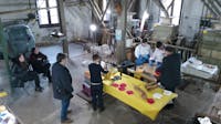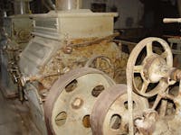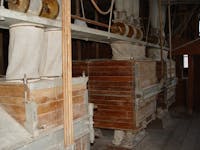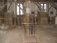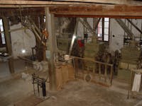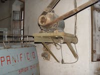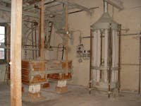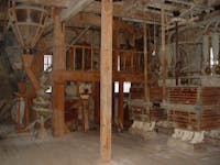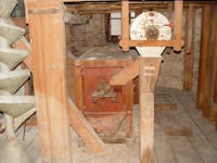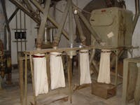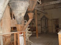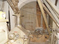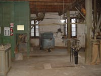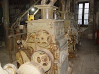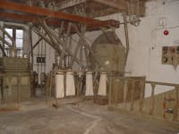 Impianto con quattro Laminatoi Golfetto e Officine Meccaniche Riunite, due plansichter, lavagrano, brillatoio, spazzolatrice, cassoni di essiccazione, due motori trifase Ganz, quadro elettrico, tutto originale del 1920, mentre l’aspirazione pneumatica e filtro sono del 1959, il tutto a trazione attraverso cinghie e pulegge, con albero di trasmissione posto sotto il laminatoi, un bilico a sollevamento portata 15 q.li, tetto in legno con travi di pino della Sila con metodo monaco, tutto distribuito su stabile in mattoni su tre livelli.