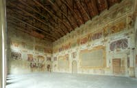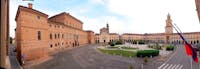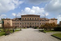 Palazzo Bentivoglio fu eretto tra il 1590 e il 1610, come sede del marchesato della famiglia Bentivoglio a Gualtieri . Il Palazzo è una parte della meravigliosa Piazza porticata in cui si inserisce come fuoco prospettico e simbolico del potere. La città nuova (Il Palazzo, la piazza, la chiesa S. Maria della Neve, la Torre civica, le strade, furono progettati, probabilmente a quattro mani da Giambattista Aleotti (Argenta) e Cornelio Bentivoglio e realizzate da Ippolito. Il Palazzo è decorato con una serie di cicli tratti dall'Eneide, dal De urbe condita di Tito Livio e soprattutto la splendida enorme Sala dei Giganti coperta con quasi 1600 mq di affreschi riproducenti 28 scene della Gerusalemme Liberata del Tasso, dipinte da Battistelli tra 1924-26. La simmetria prospettica teatrale struttura tutto il complesso (esterno e interno) in uno spettacolo dettato anche dall'amore dei Bentivoglio per il teatro. All'interno ci sono la Donazione di Umberto Tirelli e un piccolo museo su Antonio Ligabue, che qui visse gran parte della sua vita.