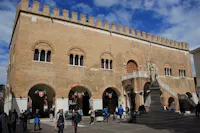 Palazzo dei Trecento, detto anche Palazzo della Ragione, è una delle architetture più importanti del centro storico di Treviso, affacciata su Piazza dei Signori. Il palazzo, con la superficie in mattoni a vista, si compone di due piani: al piano terra ha luogo la loggia, mentre al piano superiore si trova il salone, illuminato da una serie di trifore, in cui si possono ancora ammirare gli affreschi realizzati da artisti veneti tra XIV e XVI secolo. Il Palazzo fu costruito attorno al 1185 come sala per assemblee dei diversi organi del Comune di Treviso (Domus Comunis) sostituendo l'antico edificio nei pressi del Duomo; il suo completamento risale al 1268. Vi accompagneremo alla scoperta di dettagli inediti e curiosi sulla sua storia.