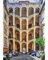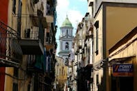 Lungo la strada incontri alcune delle più affascinanti architetture della città come la maestosa scalinata “ad ali di falco”, nel cortile del Palazzo detto dello Spagnuolo, o la sobria ma calda facciata della chiesa di Santa Maria dei Vergini.