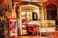 Di fronte alla targa, vi è l'Antica Pizzeria Port'Alba sorta nel 1738 e prima nel mondo.