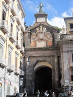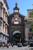 Nel 1656 il pittore Mattia Preti decorò la porta con alcuni affreschi, con raffigurazioni della Vergine con San Gennaro e San Gaetano e la scena dei moribondi appestati, mentre la collocazione della statua di San Gaetano, proveniente dalla demolita Porta dello Spirito Santo, è del 1781.