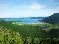 È circondato dal complesso montuoso dei monti Cimini, con il monte Fogliano (965 m) e il monte Venere (851 m) che ne lambiscono le sponde, ed è parte della Riserva naturale Lago di Vico, un'area naturale protetta situata nei comuni di Ronciglione e Caprarola, in provincia di Viterbo, che rientra nel sistema delle aree naturali protette della Regione Lazio.