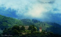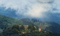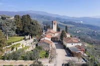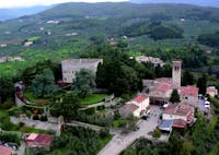 La “Rocca di Montemurlo” si trova sull’omonimo colle che domina la valle tra Prato e Pistoia appena sopra l’ex via Clodia che da Arezzo andava a Luni (SP). Fino al 1537 era un borgo incastellato con Pieve, sede comunale e case per circa 500 abitanti, tutto all’interno di due cinte murarie con quattro porte. Attualmente rimangono il castello, noto come “Rocca” e l’antica sede del comune che sono di proprietà privata, la pieve di S. Giovanni Decollato, i resti delle mura e tre porte di cui solo una originale.