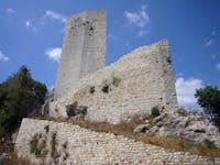 Era dotata di una doppia cinta muraria, la prima racchiudeva l’abitato e la seconda interna a protezione del palazzo feudale, con una forma semi trapezoidale. In corrispondenza della porta principale, si trova tuttora una splendida torre di forma pentagonale che aveva la funzione di cassero.
