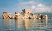 Le prime notizie documentate che rilevano, sull'isolotto di Rovigliano, l'esistenza di un tempio dedicato ad Ercole risalgono a Plinio il Vecchio. Lo scoglio, denominato Petra Erculis in onore del Dio Ercole, in epoca medievale divenne Insula Rubelliana dal nome della popolazione isolana e solo in seguito divenne Rovigliano. Durante il V secolo d.C. s'insediarono i Benedettini. Il monastero di S. Michele Arcangelo di Rovigliano fu, nel 1220, autorizzato da Papa Onofrio III ad adottare la Regola Forense; i monaci videro la decadenza del monastero nel XIV secolo in concomitanza all'istituzione della Commenda. Dalla visita pastorale del Vescovo di Nola, nel 1625, la cappella annessa al monastero risultava diruta. A seguito dell'espansione turca e conseguentemente dell'esigenza difensiva, sull'isolotto fu edificata una Torre fortificata, alta circa venti metri, che sfruttò la struttura della distrutta badia. Nel settecento Carlo III di Borbone ristrutturò la fortezza con il precipuo scopo difensivo del suo Regno dalle invasioni barbariche. Dopo l'unità d'Italia, cessando l'esigenza difensiva, la torre fu venduta a privati e nel 1925 fu dichiarata Monumento Nazionale.