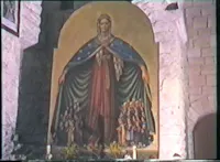 Luogo di sosta dei pellegrini in transito lungo l’antica via romano-lauretana, conserva un affresco cinquecentesco della Vergine Maria sotto un tempio sorretto da angeli, che secondo l'antica iconografia camerte rappresenta la Madonna di Loreto, bisognoso di urgente restauro. La chiesa conteneva anche un paliotto d’altare quattrocentesco con analoga raffigurazione della Madonna di Loreto: preludio alla meta finale del Santuario lauretano.