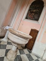 Nella navata destra è conservato il cinquecentesco fonte battesimale in marmo, a cui fu aggiunta nel corso del XVIII secolo una copertura lignea, splendido esempio dell’attività locale di intagliatori ed ebanisti (attualmente non esposto per esigenze conservative).