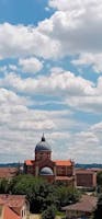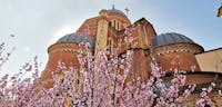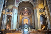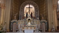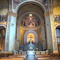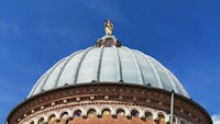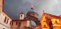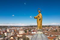 Il Santuario, costruito a partire dal 1902 inglobando il tempietto seicentesco, custodisce l’antica immagine della Madonna del Portone: una mamma che offre protezione ai suoi figli, accompagnandoli nel cammino della vita e orientandoli sempre verso Gesù. Il Santuario sta vivendo un periodo di intensa valorizzazione e i nuovi locali ospitano iniziative di catechesi, di spiritualità e di fraternità. L’immagine venerata in Santuario, raffigurante la beata Vergine con Bambino tra i santi Secondo e Marco, venne affrescata da Gandolfino da Roreto (fine XIV – inizio XV sec.) sopra l’architrave dell’antica porta della cinta muraria di borgo San Marco. Divenuta ben presto oggetto di devozione e meta di pellegrinaggio da tutto il Piemonte, sotto l’affresco venne collocato un balcone di legno, per mezzo del quale i devoti potevano avvicinarsi maggiormente. Nel 1689, il Comune di Asti pensò di costruire un tempietto che racchiudesse la porta, lasciando libero il sottopassaggio, come è visibile in una delle foto a fianco. Il nuovo edificio ingloba quel che resta del santuario di fine seicento, visibile esternamente come innestato nell’abside del santuario novecentesco. Internamente, appare come un sacello, ospitante la venerata immagine della Madonna con Bambino. La cupola si innalza sul tamburo salendo a 41 metri dal livello del pavimento; è sormontata da un cupolino su cui poggia la statua di rame dorato della Vergine, alta 3,70 metri, opera di Augusto Milani. L’altezza totale è di 50,20 metri. www.madonnadelportone.net