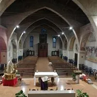 Varcata la soglia ci si immerge nella penombra della chiesa; una sola navata caratterizzata da archi traversi e tetto in legno a vista conduce sino all'altare maggiore.