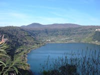 Il tempio di Diana Aricina o Nemorense era un enorme complesso collocato su un'area di 45.000 metri quadrati dal perimetro di 200 metri per 175, sostenuta a valle da sostruzioni triangolari e a monte da nicchioni semicircolari in cui probabilmente c'erano statue e un terrazzamento superiore. All'interno della piattaforma correvano due portici di ordine dorico, uno con colonne intonacate in rosso, l'altro con colonne di peperino grigio scuro; cerano statue, ambienti per i sacerdoti, alloggi per i pellegrini, celle donarie, un tempio, bagni idroterapici e perfino un teatro; di tutta questa struttura sono visibili una parete di grandi nicchioni, una parte del pronao con almeno un altare votivo, e alcune colonne.