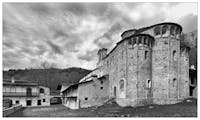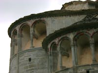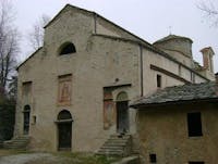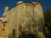 San Costanzo al Monte si trova poco a nord del paese di Dronero, sul versante meridionale del Monte San Bernardo, nel comune di Villar San Costanzo. Questo santuario, tra i più importanti della Provincia di Cuneo, risale al XII secolo circa ed è un esempio di stile romanico lombardo. Secondo la tradizione, fu eretto per volere della contessa Adelaide di Susa sul luogo del martirio per decapitazione di San Costanzo (III secolo d.C), soldato romano della Legione Tebea che si rifiutò di compiere alcuni doveri militari perché in contrasto con la sua fede cattolica. In quello stesso luogo già dall’ VIII secolo il re dei Longobardi Ariperto II aveva fatto erigere un’abbazia benedettina, poi distrutta dai Saraceni. La chiesa ha una struttura articolata e interessante: la parte più antica è costituita dalle tre alte absidi, decorate da lesene e monofore nei paramenti murari e da una serie di archetti nella parte superiore, vicino alla copertura, con inserti in cotto che arricchiscono questi elementi di una vivace cromia rossa. I capitelli degli archetti sono intagliati e decorati con motivi geometrici e fitomorfi tutti diversi l’uno dall’altro. Anche la cripta risale al primo momento costruttivo della chiesa, ed anche in essa si possono ammirare capitelli decorati che reggono le volte a crociera. La cripta ricalca esattamente la pianta della chiesa superiore, a tre navate. Anche qui troviamo una particolarità: la chiesa vera e propria è preceduta da un vestibolo gotico scandito in tre da spesse colonne che sorreggono archi a sesto acuto coperti da capriate lignee; il vestibolo immette sia nella cripta sia nella chiesa, le cui navate sono divise da pilastri cruciformi che reggono archi a tutto sesto e una volta a botte a tre campate. Nella seconda campata si apre una cupola, coperta all’esterno da un tiburio ottagonale, anch’esso arricchito dagli elementi in cotto che si vedono sopra le absidi. La parte più recente è l’attuale facciata: costruita tra Sei e Settecento con uno stile molto semplice, si presenta a capanna con doppio spiovente e in essa si aprono tre porte, una più grande al centro e due più piccole ai lati, al di sopra del piano di calpestio e accessibili grazie due piccole scalinate. Sulla facciata sono ancora visibili tre affreschi rappresentanti San Costanzo e altri due santi, oggi non apprezzabili nella loro bellezza a causa dei segni lasciati dal tempo e dagli agenti atmosferici. Nei primi anni dell’Ottocento, con le nuove leggi napoleoniche, il Santuario fu confiscato e ceduto a un privato e i benedettini cessarono la loro attività monastica; fu parzialmente riacquistato e aperto al pubblico dalla Parrocchia di Villar San Costanzo solo nel 1918 e negli anni ’80 del secolo scorso l’amministrazione provinciale riuscì a ottenere anche le parti ancora di proprietà privata. Ad oggi la proprietà del bene è divisa fra la Provincia di Cuneo e la Parrocchia di San Pietro in Vincoli di Villar San Costanzo. A cavallo tra la fine del Novecento e i primi anni Duemila il complesso è stato oggetto di restauri che hanno permesso di ritrovare o di riportare in buone condizioni lacerti di affreschi romanici nella chiesa superiore. Dal 2012 il luogo è visitabile grazie all’impegno di un’associazione locale. Ciononostante un comitato locale si è attivato al censimento segnalando il Santuario che necessita di ulteriori lavori di restauro conservativo, dovuti alle cattive condizioni tetto e degli infissi, alle infiltrazioni d’acqua e al mancato completamento degli interventi interni.