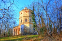 Come ricostruito dallo storico Fabio Borello,di Piemontefantasma, la storia del santuario è una vera perla, sulla collina tra Lucedio e Montarolo, frazioni del comune di Trino, sorge la chiesa del Santissimo Nome di Maria detta Madonna delle Vigne, la chiesa sorge su un lucus paleocristiano, il primo corpo della chiesa risale alla prima metà del XVII secolo, è infatti visibile nella cartografia dell'epoca in dimensioni molto ridotte rispetto a quanto vediamo oggi, sarà l'abate di Lucedio Vincenzo Grimani, a predisporne l'ampliamento nella parte ottagonale, a cura di Antonio Bertola prima e Giovanni Battista Scapitta poi; della parte antica oggi rimane solo il coro ed i lavori terminano postumi all'abate, nel 1707 infatti, i Savoia entrano in possesso dei possedimenti di Lucedio e solo il 21 luglio del 1713, la chiesa può essere benedetta dal parroco di Trino, Girolamo Risico, nella sua nuova livrea. Conteneva al suo interno una statua lignea di Madonna con bambino eseguita da Carlo Giuseppe Plura. Dagli anni settanta del 900 grava in stato di pesante degrado ed abbandono. non dimentichiamo che questa chiesa è stata la palestra di tutti gli artisti più importanti del barocco piemontese, qui, antonio bertola, progetto la chiesa per dare al futuro vicerè di napoli (Grimani) un edificio degno del suo rango, e ci riuscì. non è giusto ricordare questa chiesa solo per una leggenda che altro non fa che fomentare gli atti vandalici e di degrado che purtroppo stanno devastando la chiesa.