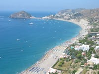 La Spiaggia dei Maronti è una delle più incantevoli d'Italia. Lunga circa 3 Km. si tuffa a dolce declivio nel mare. E' riparata da imponenti cerchie di colline. Per arricchire il fascino del paesaggio vi sboccano le aperture buie delle cave che si possono risalire in cerca di emozioni. In una di queste cave si trova la più potente sorgente di acque termali dell'isola: la Sorgente della Cava Scura. Resterete sorpresi quando scorgete che dai fianchi della collina è stato ricavato nel vivo tufo un bagno termale all'aperto. Le vasche sono sistemate tra le acque terapeutiche che vi offrono un confortevole bagno. Questi bagni già erano noti, sotto altra forma, agli antichi romani. Il nome della più famosa spiaggia dell'isola, Maronti, deriva dal greco e fu tradotto poi in latino con il termine quatior che significa spiaggia tranquilla. La spiaggia dei Maronti - come del resto tutte le spiagge dell'isola d'Ischia - ha goduto dei Privilegi Aragonesi concessi da Ferdinando d'Aragona, pronipote di Alfonso, per la fedeltà dimostrata dal popolo ischitano alla corona quando, per la defezione delle città del regno, Ferdinando dovette fuggire dalla capitale trovando rifugio sull'isola. La morte, però, lo colse prima che egli potesse ratificare quanto elargito; fu lo zio Federico, suo successore a portare a compimento i desideri del nipote che prevedevano che proprietario dei promontori, delle spiagge e del mare per mezzo miglio attorno alla costa doveva essere il popolo ischitano. Le amministrazioni dell'isola potevano cosi legiferare su questi beni e fittarli e furono custodi gelose di questi Privilegi perchè sul piano economico rappresentavano la possibilità di vivere con agiatezza. La spiaggia, oltre che fare la gioia dei turisti e dei bagnanti, era anticamente la gioia dei pirati. Essi potevano arrivare con le loro imbarcazioni fin sulla riva a causa della profondità del mare. I pianori che affacciavano sulla spiaggia, servivano loro come rifugio sicuro e come nascondiglio di ogni mercanzia razziata durante le scorrerie. I pirati scavavano dei pozzi a forma circolare con un'ampia base ed un'imboccatura stretta fissando poi una scala per poter salire e scendere. Una volta riempiti di merce preziosa chiudevano l'imboccatura con una larga pietra e su di essa stendevano del terreno con delle piantine, mettevano dei segnali e poi ripartivano. I tesori venivano in seguito trasportati oltre i mari senza destare sospetti. Nel dicembre del 1999, una violenta mareggiata si è abbattuta sulla spiaggia dei Maronti, provocandone in pratica la scomparsa e aggredendo pericolosamente anche la falesia rocciosa retrostante. Per la ricostruzione è stata utilizzata sabbia prelevata nella zona prospiciente dove è stata individuata una cava sottomarina a una profondità superiore a 20 m. Attualmente anche se frequentata da turisti ed isolani, la spiaggia dei Maronti versa in condizioni precarie poichè le continue intemperie invernali minano ogni anno la grandezza e la bellezza della spiaggia.