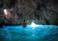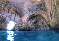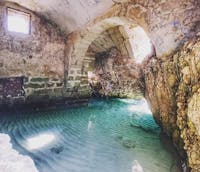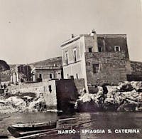 La stanza è accessibile da due aperture laterali alla camera, una delle quali doveva essere l'ingresso principale perché si vedono ancora i battenti della porta che chiudeva l'entrata (prima foto); l'altra è invece molto dissestata e difficoltosa da raggiungere. Ma l'entrata più suggestiva è quella che si intravede nella seconda foto. Questo è un foro semi sommerso che permette l'accesso dal mare: entrare da lì è un sogno! Si trattiene il respiro, si fanno due bracciate e si viene trasportati da una spiaggetta affollata in un luogo sospeso fuori dal tempo. La stanza per i bagni a Santa Caterina di Nardò. Era usanza dell' '800 e dei primi del '900 che le dame di un certo rango potessero beneficiare dei bagni al mare, con tutta la discrezione e riservatezza che il caso richiedeva. Venivano perciò realizzate ad hoc delle stanze, a ridosso della scogliera, in cui entrava il mare formando delle piscine coperte naturali nelle quali, spesso, si accumulavano delle piccole spiagge, come in questo caso. Le dame vi accedevano da terra e prendevano il bagno indisturbate, al riparo da occhi curiosi e dal sole d'estate che avrebbe brunito la loro pelle bianca, rendendola simile a quella delle contadine che lavoravano la terra.