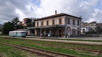 L’antica Stazione Ferroviaria di Tempio Pausania e la sua linea ferroviaria a scartamento ridotto, che collegava il centro di Tempio Pausania con le città di Sassari e Palau, oggi solo con Palau, è inserita nei percorsi del “Trenino Verde” della Sardegna. L'edificio che ospita la Stazione è una interessante testimonianza dell’edilizia civile del secolo scorso. L’edificio conserva la struttura architettonica e gli arredi originari, così come le antiche Officine che si trovano lì accanto. La direzione dei lavori della stazione, che è stata realizzata tra 1929 e1931, viene attribuita all'Ing. Maroni o all'Ing. Emilio Olivieri, su un progetto esecutivo redatto dall' Ing. Marco Antonio Baffigo. La facciata esterna dell’edificio è ispirata agli stilemi dell’architettura liberty ed è armoniosamente curata nei materiali - granito, mattone e intonaco - e nelle belle decorazioni di Art déco, fra le quali risalta, in graffito, lo stemma della Città di Tempio. L'edificio si sviluppa su due piani, è dotato di una pensilina in ferro battuto, ornata con una splendida cornice a dentellatura smussata. La parte più preziosa e suggestiva della Stazione è la sala di aspetto: il locale è rivestito con una ricca zoccolatura in legno, è dotata di una biglietteria con sportellino originale in ferro battuto, ma la parte più rilevante sono le magnifiche tele collocate sulle pareti laterali del pittore GIUSEPPE BIASI (1855 – 1945) uno dei maggiori esponenti della pittura sarda del Novecento. Si tratta di un ciclo pittorico realizzato tra il 1931 ed il 1932, che raffigura il mondo dei contadini e le tradizioni popolari della Sardegna. Le magnifiche tele, a causa dell'umidità, versano in pessime condizioni e necessiterebbero di un restauro immediato e di successive adeguate azioni di valorizzazione. Annesse all'edificio della Stazione ci sono le ex Officine Ferroviarie, adibite nel secolo scorso alla manutenzione delle locomotive. Le Officine conservano oggi, ancora perfettamente funzionanti, i relativi complessi ingranaggi. Attualmente i locali sono stati trasformati in "Museo delle Ferrovie" ove sono esposte le vecchie locomotive a vapore degli anni '50 e le carrozze in legno del 1913, già perfettamente restaurate. Gli itinerari percorsi dalla ferrovia storica rivelano ai viaggiatori, in poche ore, gli angoli più suggestivi e meravigliosi della Gallura, i suoi luoghi incontaminati, i panorami mozzafiato, angoli sicuramente meno conosciuti e frequentati delle spiagge e delle coste ma in grado di suscitare nel visitatore sensazioni ed emozioni indimenticabili.