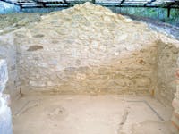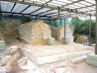 I resti del tempio sono stati scoperti nel 1865 dall'archeologo Felice Barnabei. Si trovano in località Venaquila, poco fuori dall'abitato dirigendosi lungo la strada statale 80 del Gran Sasso d'Italia verso il passo delle Capannelle. Nei resti del mosaico sul pavimento della struttura è stata rilevata un'iscrizione che, oltre a riportare il nome di Ercole come la divinità a cui il tempio era dedicato, permette di datare il tempio al 55 a.C. tramite la citazione della coppia consolare. Il tempio fa parte delle infrastrutture realizzate dai romani lungo la via Cecilia. Il tempio è stato abbandonato in età imperiale a causa di una frana, che in parte ne ha protetto le rovine. La struttura più evidente è quella dei resti delle mura della cella del tempio, che conserva al proprio interno resti di una pavimentazione a mosaico in opus tessellatum con tessere bianche e riquadratura nera. Tracce di intonaco sono state rilevate esclusivamente nella fascia inferiore della muratura.