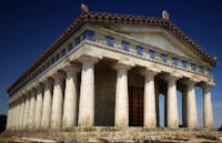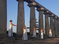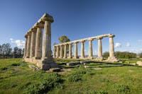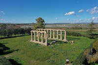 Il Tempio greco di Hera fu edificato nel VI sec. a.C. accanto al Bradano, fiume sacro ed essenziale nella concezione e nel pensiero degli Achei che nel 773 a.C., come riporta l’antico storico greco Eusebio di Cesarea, fondarono Metapontion. Delle 32 imponenti colonne doriche originarie ne rimangono ben 15. Eretto sui resti di un antico villaggio neolitico a circa 3 km dall’antica polis di Metapontion, in un'area "extra moenia", l’Heraion era frequentato da Greci ed Enotri. In una cartografia del Regno di Napoli (1808), il Tempio viene identificato con il toponimo “Cattedra di Pitagora”. D’altronde che Pitagora, dopo tanto peregrinare, fuggiasco e provato nel fisico e nell’animo, abbia trovato riparo a Metaponto, dove, nell’assoluto segreto, dispensò i suoi preziosi insegnamenti, quelli della maturità, fino alla morte che lo colse lì a veneranda età, è testimoniato da molte fonti, anche antichissime. Tuttavia la storia recente ci ha consegnato un appellativo "Tavole Palatine".