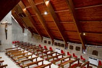 L’edificio rappresenta una delle opere più apprezzate degli architetti trevigiani Giuseppe Davanzo (1921-2007) e Livia Musini (1929-2011), allievi di Carlo Scarpa, che concepirono una forma architettonica a capanna, dal caratteristico andamento ellittico irregolare, per rappresentare la casa di tutti, un luogo sicuro, di ristoro e riparo. La forma a capanna si ispira alla chiesa di Nostra Signora del Cadore a Borca (BL), di Edoardo Gellner e Carlo Scarpa. La copertura in rame, sostenuta da una serie di indipendenti puntali in legno, appare leggera, sospesa sulla massiccia muratura in cemento armato. La curvatura ellittica della facciata d’ingresso disegna una forma morbida e ancestrale: un ideale abbraccio materno che accoglie, consola e rassicura.
