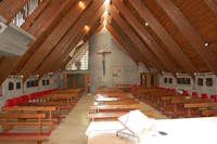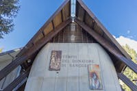 Il tempio si trova in un’area montana, sulla spianata di Pianezze a 1.061 metri di altezza, all’interno dell’area delle “Colline del Prosecco di Conegliano e Valdobbiadene”, dal 2019 riconosciuta Patrimonio mondiale dell’Umanità dall’UNESCO in qualità di “paesaggio culturale”. Il Tempio è raggiungibile salendo lungo le pendici del Monte Cesen, nelle Prealpi venete, dopo un suggestivo alternarsi di boschi, pascoli e malghe. Fu costruito nel 1962 per volontà di alcuni donatori di sangue che volevano cancellare lo sdegno del sangue versato nel territorio durante le guerre: il tempio è collocato infatti in un’area particolarmente simbolica, ovvero nel punto in cui, durante la Grande Guerra, sorgeva una postazione di cannoni. L’edificio rappresenta una delle opere più apprezzate dell’architetto Giuseppe Davanzo (1921-2007), allievo di Carlo Scarpa. La forma a tenda della copertura rappresenta il riparo e l’accoglienza, mentre l’essenziale interno conserva un crocifisso in legno di scuola veneziana del XVI secolo, bisognoso di restauro.
