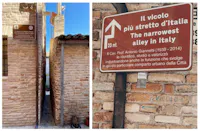 Il vicolo più stretto d’Italia è stato scoperto nel 1968, quando la misurazione di tutti i vicoli del centro storico fu effettuata dal professor Antonio Giannetti. Non ha un nome, ma è una vera e propria attrazione turistica, e viene rilasciato dall’Ufficio del Turismo di Ripatransone un attestato a chi lo attraversa.