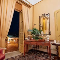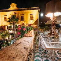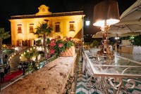 È una delle residenze più imponenti della Piana dei Colli. Un tripudio di saloni affrescati, palme secolari, grandi terrazze e raffinate maioliche. Usata come set per riprese cinematografiche, la dimora, fatta costruire dal marchese Giovanni Brancaccio nella prima metà del ‘700, passò di mano in mano fino ad arrivare ai De Cordova, marchesi della Giostra, all’inizio del ‘900. La decorazione degli interni è un trionfo di illusioni prospettiche, tromp-l’oeil, stucchi, affreschi e pavimenti originali del Settecento. I tempi spaziano dal gusto neoclassico del “Salone pompeiano”, a quello esotico del secondo grande “Salone cinese” ai delicati ornati a stucco del “Salone azzurro” e del “Salone giallo”, ancora oggi conservati grazie ad un attento lavoro di recente restauro. La villa è circondata da una grande corte di oltre mille metri quadrati con un suo raffinato giardino