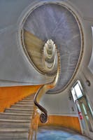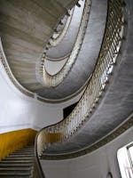 La composizione è impostata sulla parte centrale di matrice ellissoidale, caratterizzata dal gioco di pieni e vuoti e dalla presenza di grandi vetrate; nella parte centrale dell'edificio è alloggiata la scala principale ancora ellissoidale, in marmo a sbalzo e con balaustra in ferro battuto.