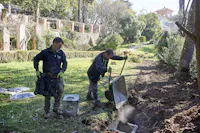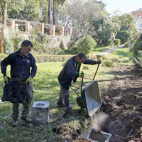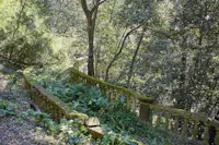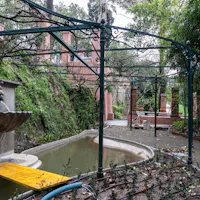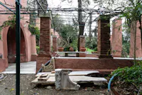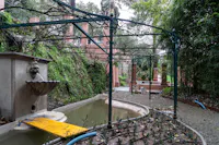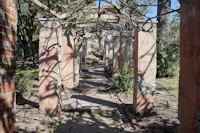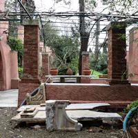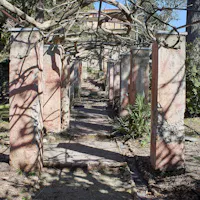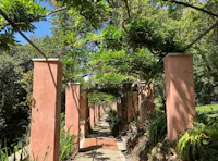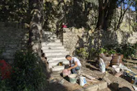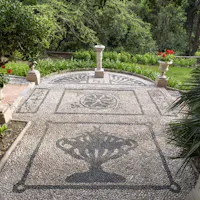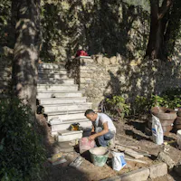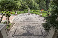 L'intervento ha privilegiato la conservazione degli elementi architettonici originari che connotano l’identità del giardino: sentieri in ghiaino, percorsi in mattoni e pietra, acciottolati decorati “a risseu”, scale in marmo. Questi manufatti, in parte compromessi, sono stati oggetto di consolidamenti strutturali, integrazioni puntuali e restauro selettivo delle parti ammalorate. Particolare attenzione è stata riservata al recupero statico del lungo pergolato a “pompeiana” coperto di glicine. Il progetto ha gestito la materia nel suo mutare nel tempo, valorizzando l’interrelazione tra elementi vegetali e architettonici per favorire una manutenzione integrata.