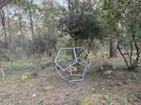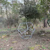 Dodecaedro di Federica Luciani è stata scelta per la capacità di coniugare in modo convincente impianto simbolico, esperienza corporea e attenzione al contesto: l’opera è una struttura essenziale, non invasiva, che invita le persone a entrare, sostare e meditare nel Bosco di Curadureddu, attivando una relazione “non didascalica” tra uomo, natura e cosmo.
