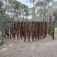 Labirinto si configura come un percorso di attraversamento e contemplazione: la forma archetipica rimanda a simbolismi universali presenti in numerose culture e invita a un tempo di riflessione in sintonia con la dimensione naturale del luogo. La visione dall’alto richiama l’immagine di un mandala vegetale, mentre gli spazi tra i tronchi introducono uno scarto percettivo che stimola una riflessione sul rapporto tra individuo, collettività e ambiente.