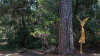 Le installazioni costellano il parco-museo lungo un percorso immersivo tra lecci, sugherete e macchia mediterranea: un’esperienza artistica di land art a 360° gradi in cui il visitatore è portato a esplorare attivamente la biodiversità del Bosco.