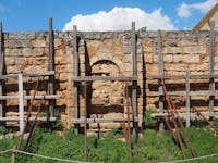 L’ultimo intervento realizzato all’Abbazia di Cerrate grazie ai fondi dell’Art Bonus riguarda il muro di cinta in pietra che racchiude l’agrumeto, una porzione di oltre 50 metri, che, prima di essere consolidato, era fortemente dissestato, tanto da dover essere sostenuto da dei puntelli in legno per ragioni di sicurezza.