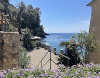I giardini si estendono a fianco dell’Abbazia, di fronte all’edificio della Canonica, su un grande muraglione in pietra di terrazzamento, alle pendici del Monte di Portofino, che si erge al margine della spiaggia e offre un’eccezionale vista sulla baia.