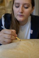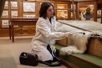 Il lavoro è iniziato con una fase di analisi tramite luce diffusa e radente, utile a individuare alterazioni non visibili a occhio nudo e tracce di interventi precedenti. Sulla base delle osservazioni raccolte, i restauratori hanno eseguito puliture con aspiratore museale a bassa potenza, ricuciture puntuali di strappi e lacerazioni, la sostituzione di tulle protettivo danneggiato e un trattamento di disinfestazione della pelle d’orso.