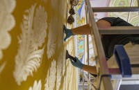 La scelta di eseguire i lavori a Bene aperto, in modo da garantire la visibilità del Palazzo nell’anno di Bergamo Brescia Capitale Italiana della Cultura, ha reso decisamente più complicate le attività di cantiere. Negli ultimi due anni l’Ufficio Restauri e conservazione del FAI, insieme a consulenti e maestranze locali, ha coordinato e curato numerosi lavori, come la messa in sicurezza di quasi quaranta serramenti storici in legno, interni ed esterni, la realizzazione di una complessa rete impiantistica, accuratamente nascosta e armonizzata al delicato contesto, la rifunzionalizzazione di oltre 260 metri quadri di spazi di servizio e, in ultimo ma non meno importante, il restauro dei giardini del secondo e terzo terrazzamento, dove il disegno storico degli spazi è stato valorizzato e adeguato alle attuali esigenze di fruizione e visita del Palazzo.