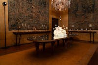 • il soffitto a stucco, progettato dall’architetto Piero Portaluppi, della Sala da pranzo di Villa Necchi Campiglio a Milano