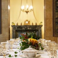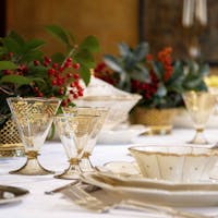 It was in this context that the precious beige and gold tableware designed by Andloviz around 1925 for S.C.I. was created. FAI displays it in the dining room of Villa Necchi in Milan, on a table set for the Christmas holidays, thus giving the tableware its rightful context and taking the opportunity to reaffirm the character and domestic atmosphere of this property.